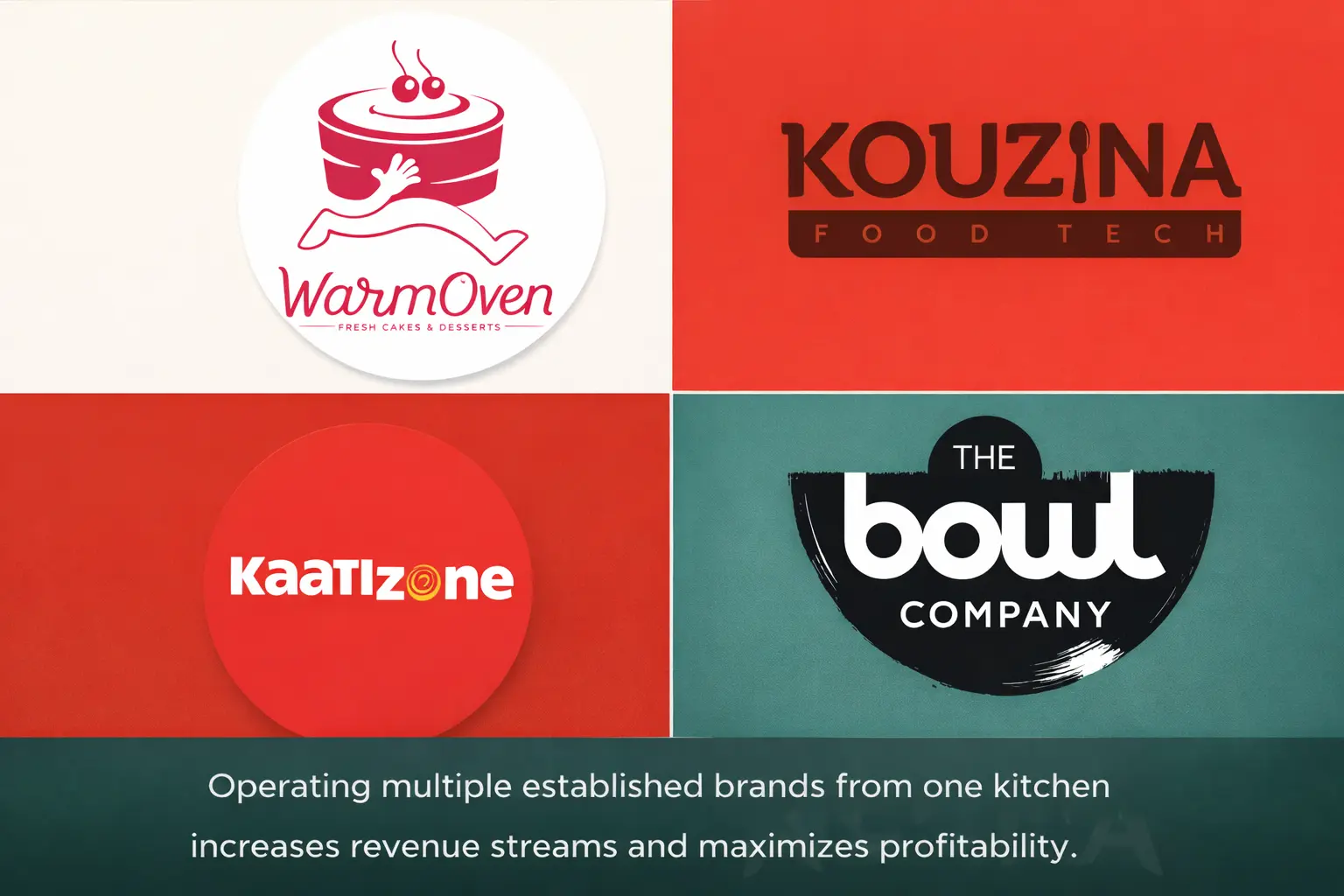 Instead of operating a single cuisine brand, Kouzina provides access to multiple established food brands from one kitchen setup. For example: