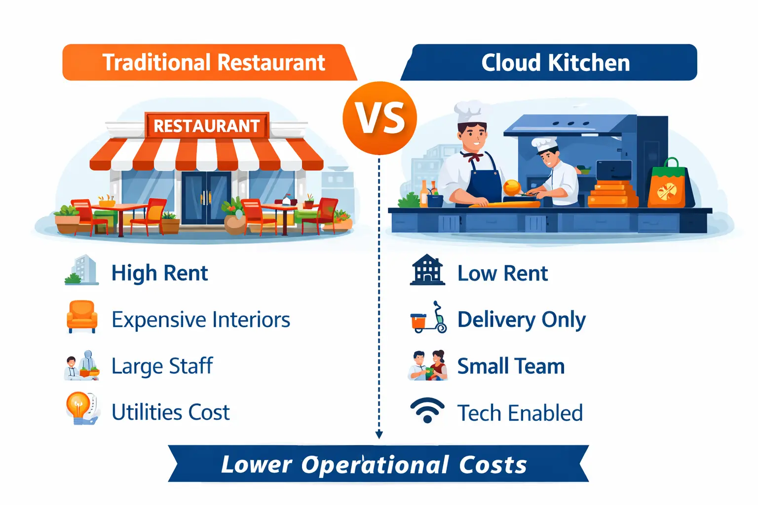 Especially with the rise of cloud kitchens, you can operate from compact spaces.