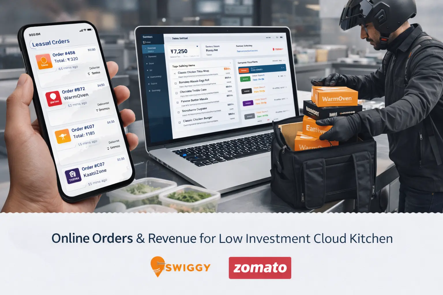 A low investment cloud kitchen franchise is a delivery-only food business operated under an established brand. It eliminates dine-in facilities and focuses purely on food preparation and delivery through aggregators.