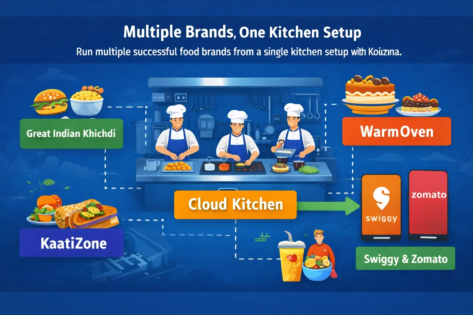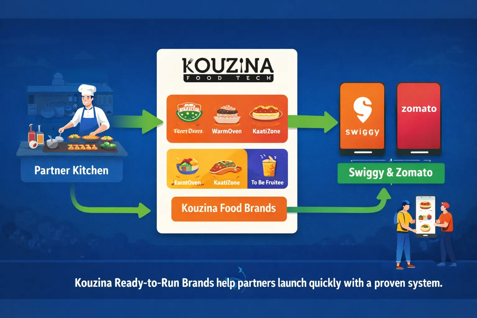 Kouzina Food Tech has introduced one of the most exciting opportunities in India’s cloud kitchen space by offering entrepreneurs and partners a chance to operate successful food brands with a proven model, ready infrastructure, and end-to-end support.